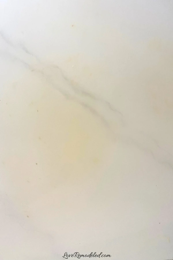 Last, I found that if someone put something REALLY hot on the countertop, the white would yellow a bit. I don’t mean a mug of coffee… I mean a hot pot from the stove top. So, this is really easily avoided.